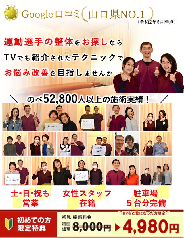 迷うことなく岩国市の【ひなた整体院】の施術を受けるべきだと思います。