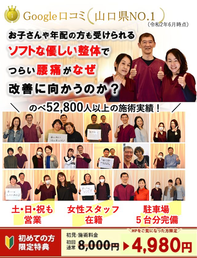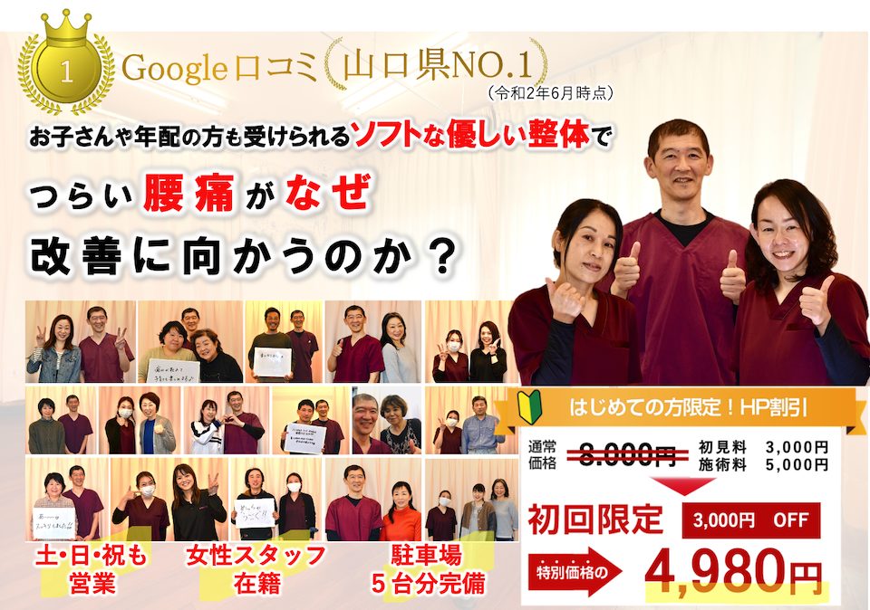 迷うことなく岩国市の【ひなた整体院】の施術を受けるべきだと思います。